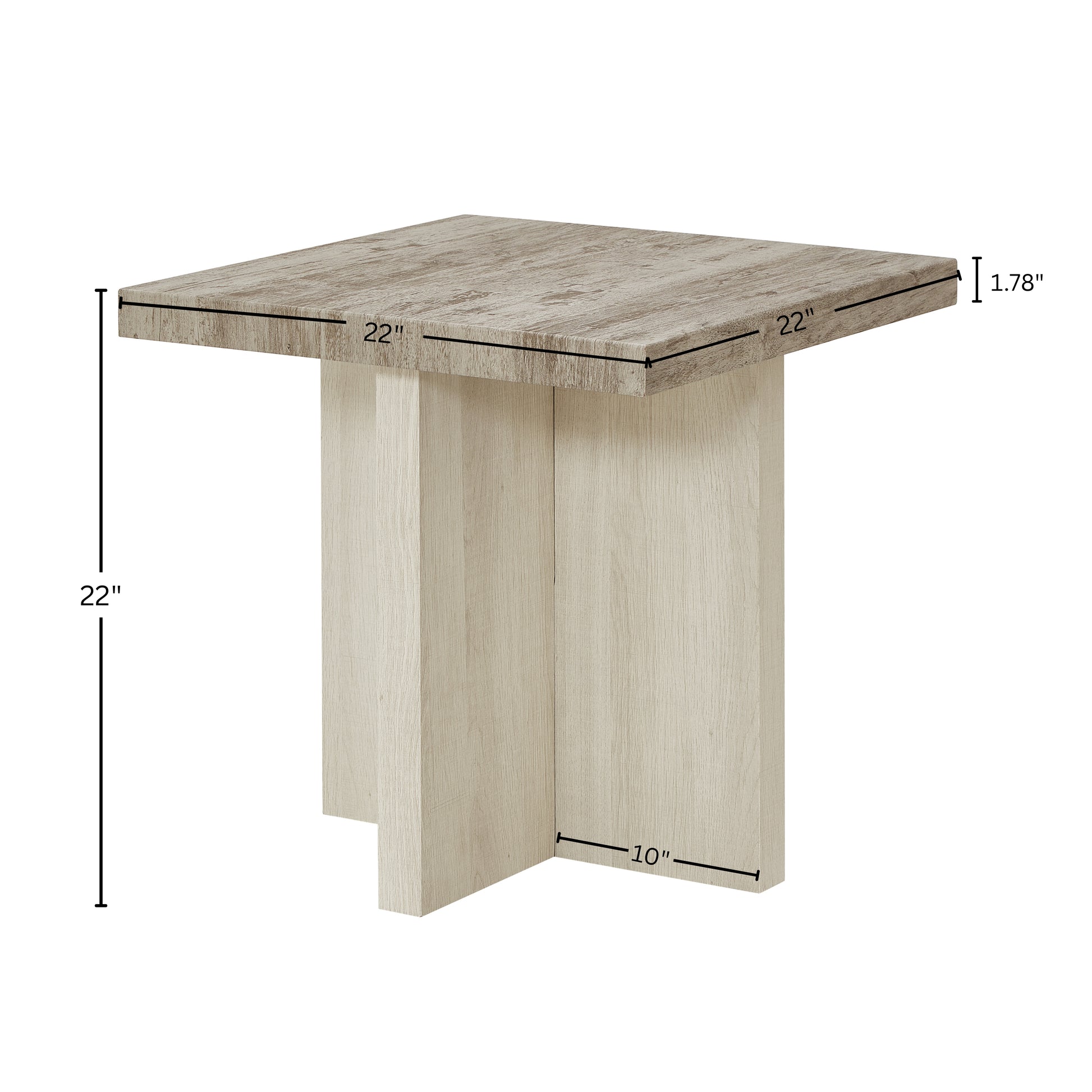 End Table: 22W x 22D x 22H; Table top thickness: 1.78 inch.