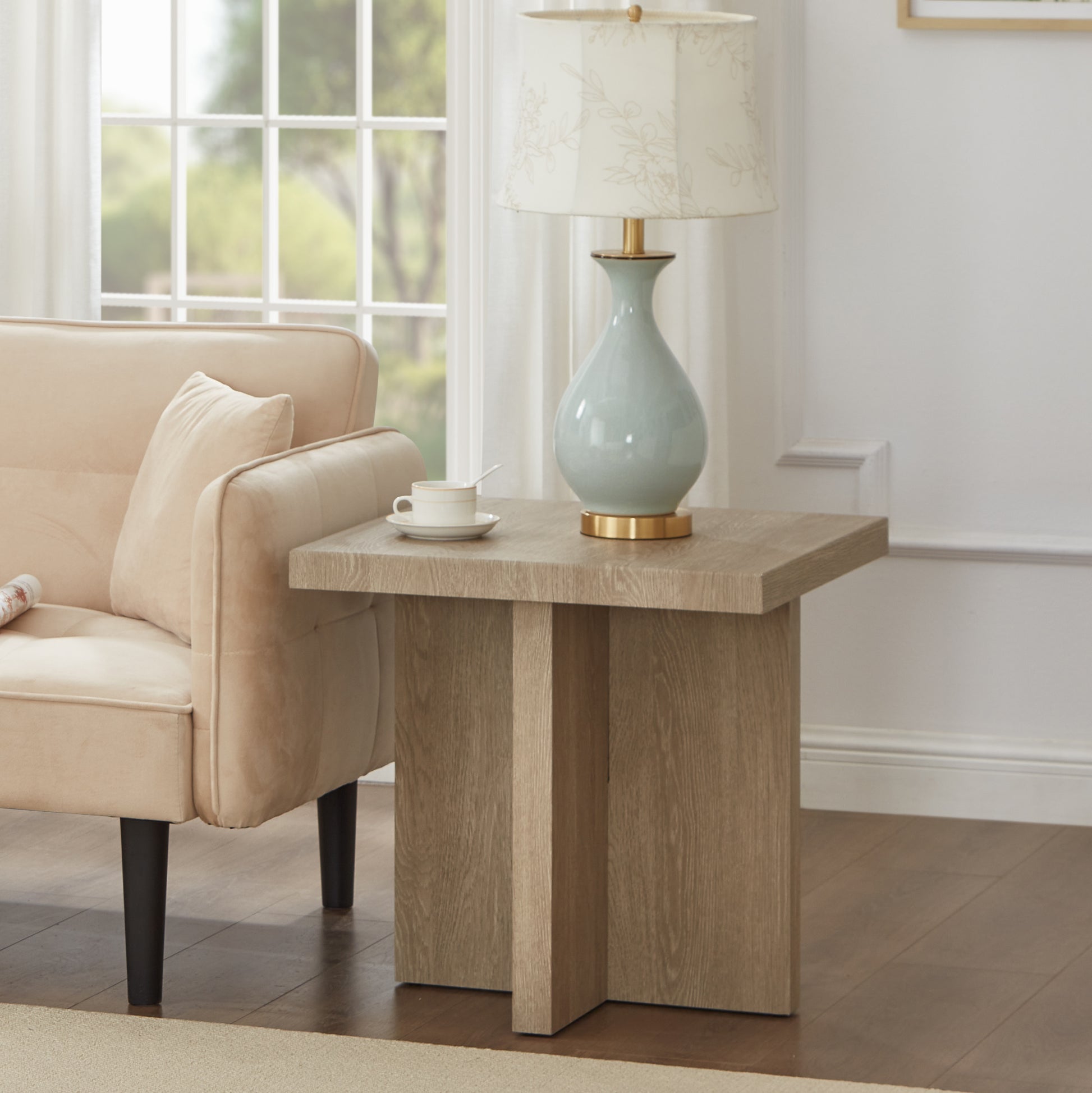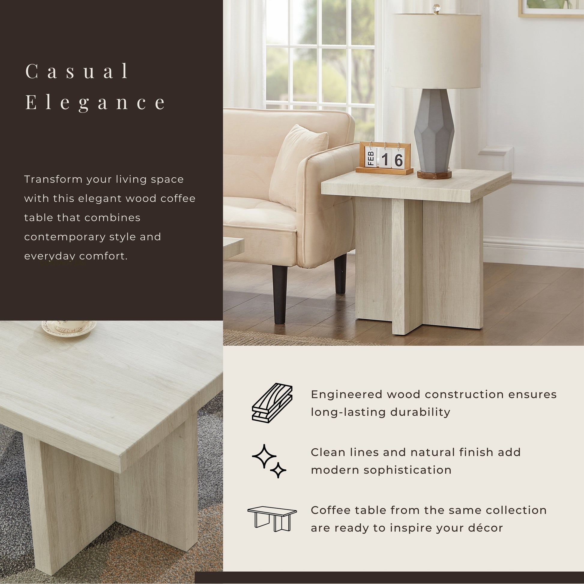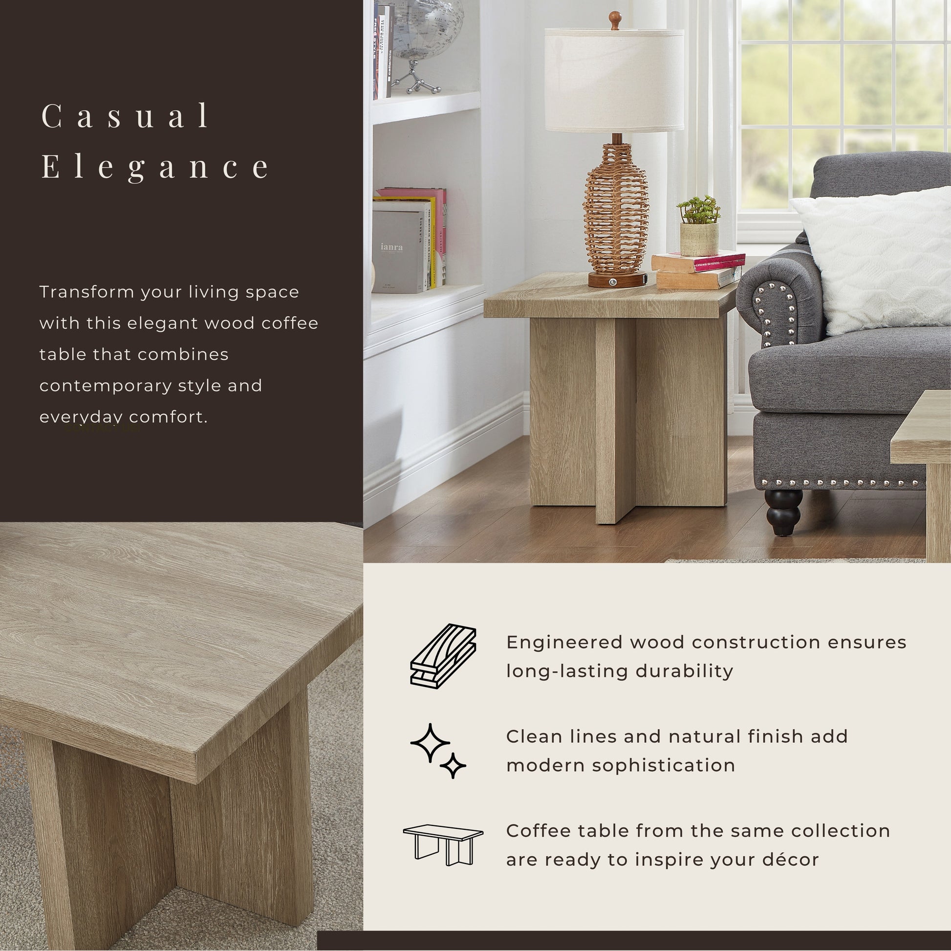 The Roundhill Furniture Mchome Square Wood End Table is a stunning piece that effortlessly enhances any living space with its inviting warmth and timeless charm. Inspired by the clean lines of a double-pillar design and balanced by sleek T-shaped legs, this table masterfully blends rustic character with modern sophistication, creating a look that is both eye-catching and welcoming. Crafted with veneer over durable engineered wood, ensuring lasting strength and resilience in everyday use. The smooth finish highlights the natural wood grain, adding depth and texture to its fresh appeal.