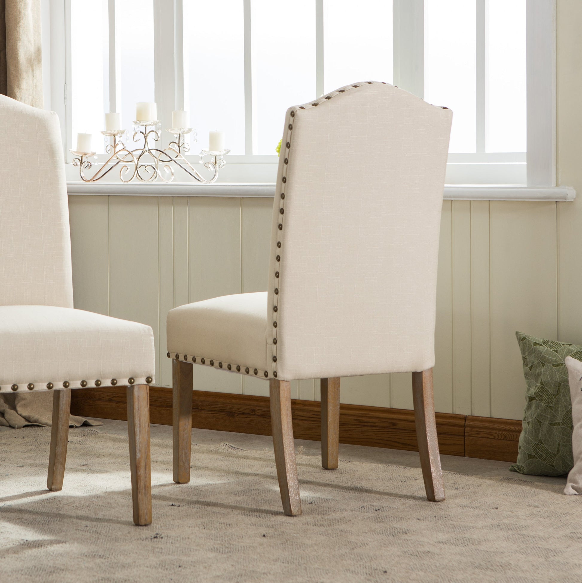 Roundhill Furniture Mod Urban Style Solid Wood Nailhead Fabric Padded Parson Chair, Set of 2