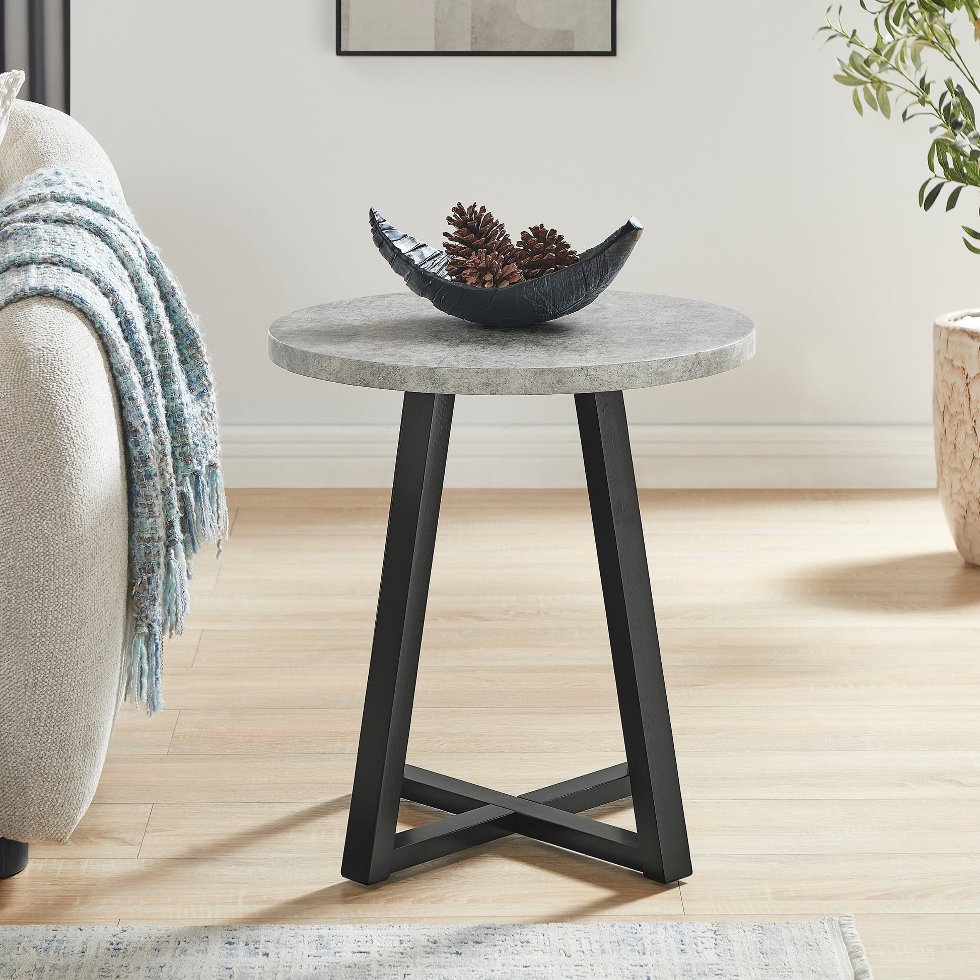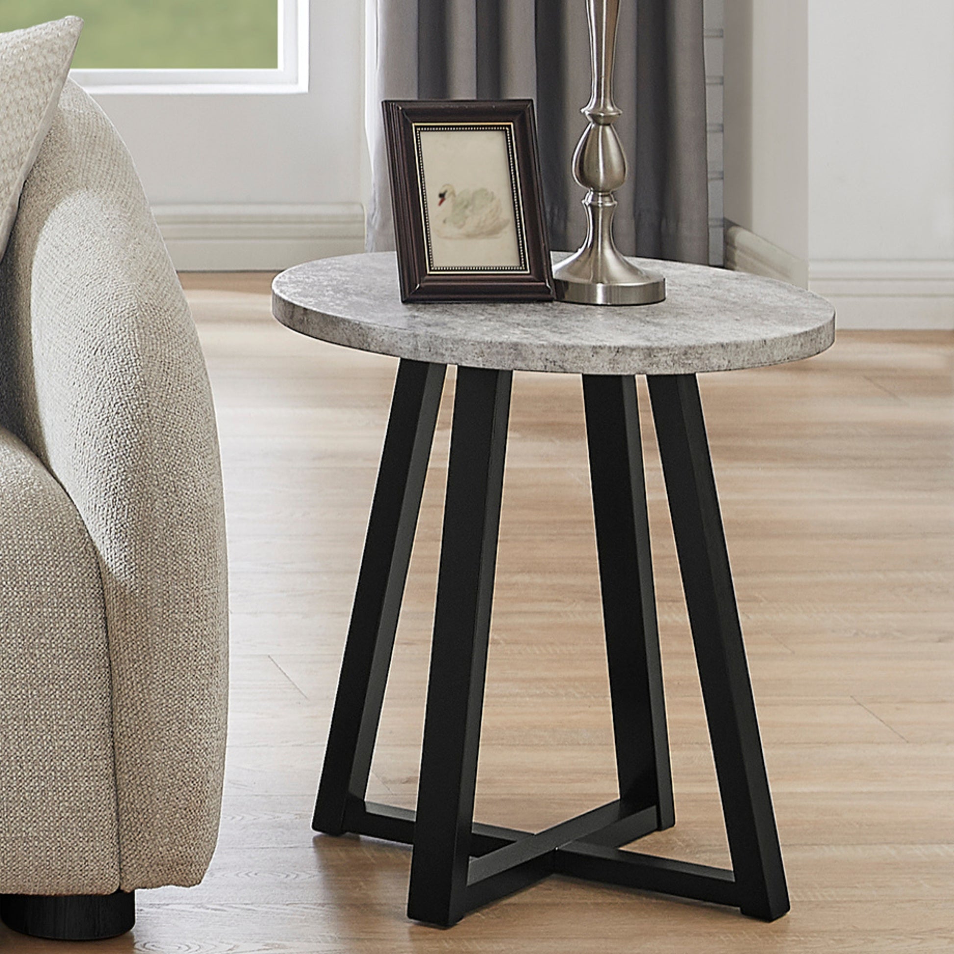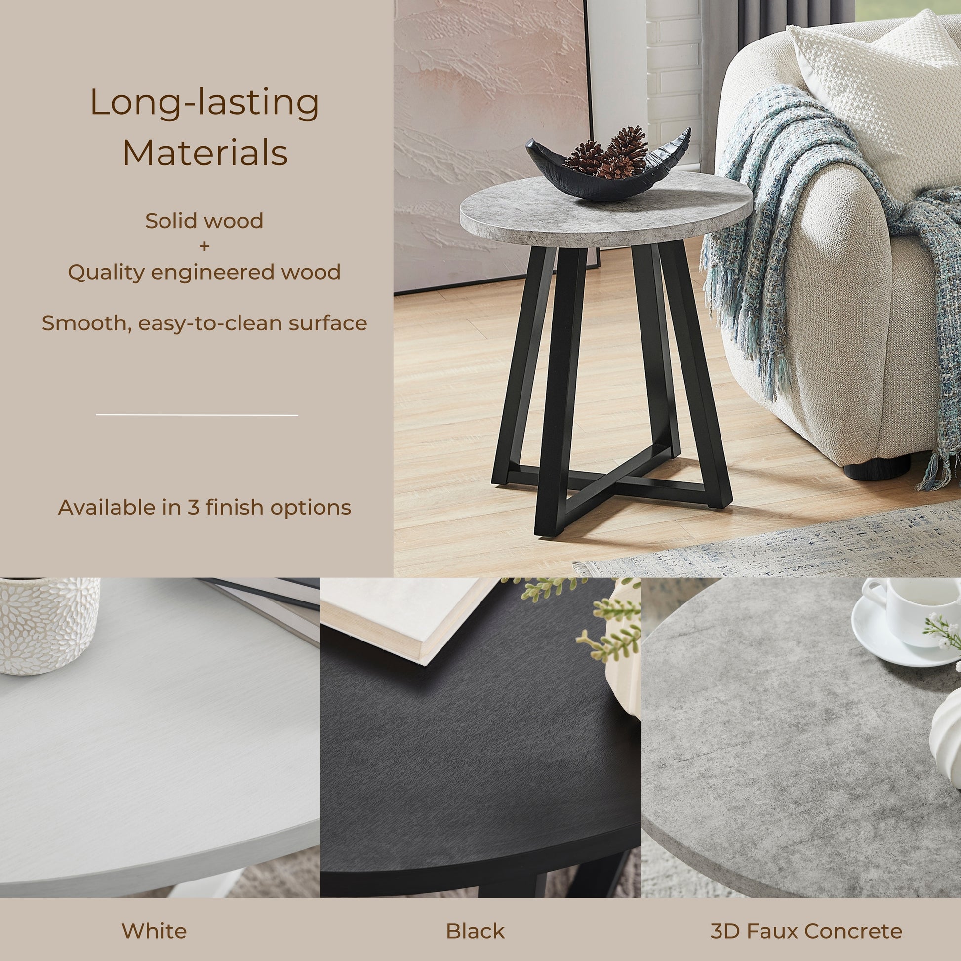 Elevate your living space with the sleek and sophisticated design of the Modern Harmony Round End Table. Crafted with a contemporary aesthetic, this end table features a smooth, round-shaped tabletop made from durable MDF and Melamine board, offering a refined surface that resists wear and tear. The sturdy, solid rubberwood legs ensure long-lasting stability, while the choice of sleek black, crisp white and faux concrete gray effortlessly complements any décor. Perfect addition to your living room of bedside, this table is a harmonious blend of style and function that enhances your home.
