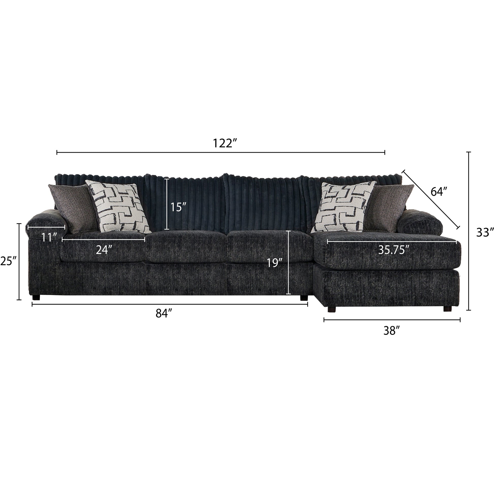 Sectional Sofa: 122"W x 64"D x 33"H. Left arm facing sofa: 84"W x 39"D x 33"H, right arm facing chaise: 64"W x 38"D x 33"H.