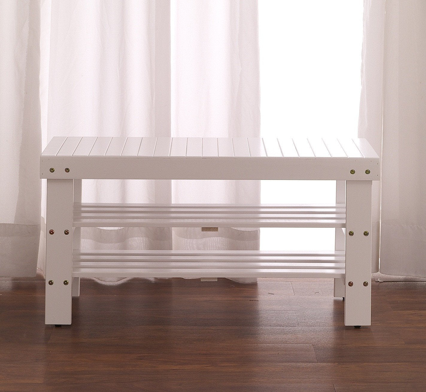 This Solid Wood Shoe Bench is a perfect addition to your entryway or bedroom, offering a practical spot to sit while putting on shoes and adding valuable storage without taking up much space. Made with a durable solid wood frame, it can hold up to 10 pairs of shoes, keeping your space organized and tidy. The clean white finish complements any decor, and plastic levelers under the legs ensure stability on uneven surfaces. Compact and versatile, this bench provides both seating and storage, all with easy assembly and lasting durability.