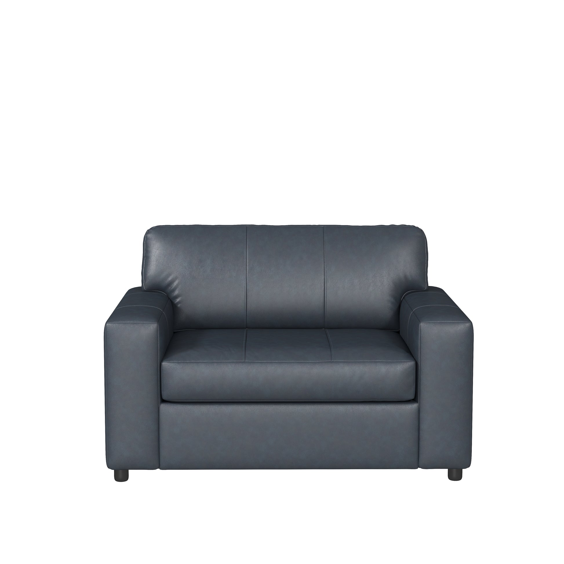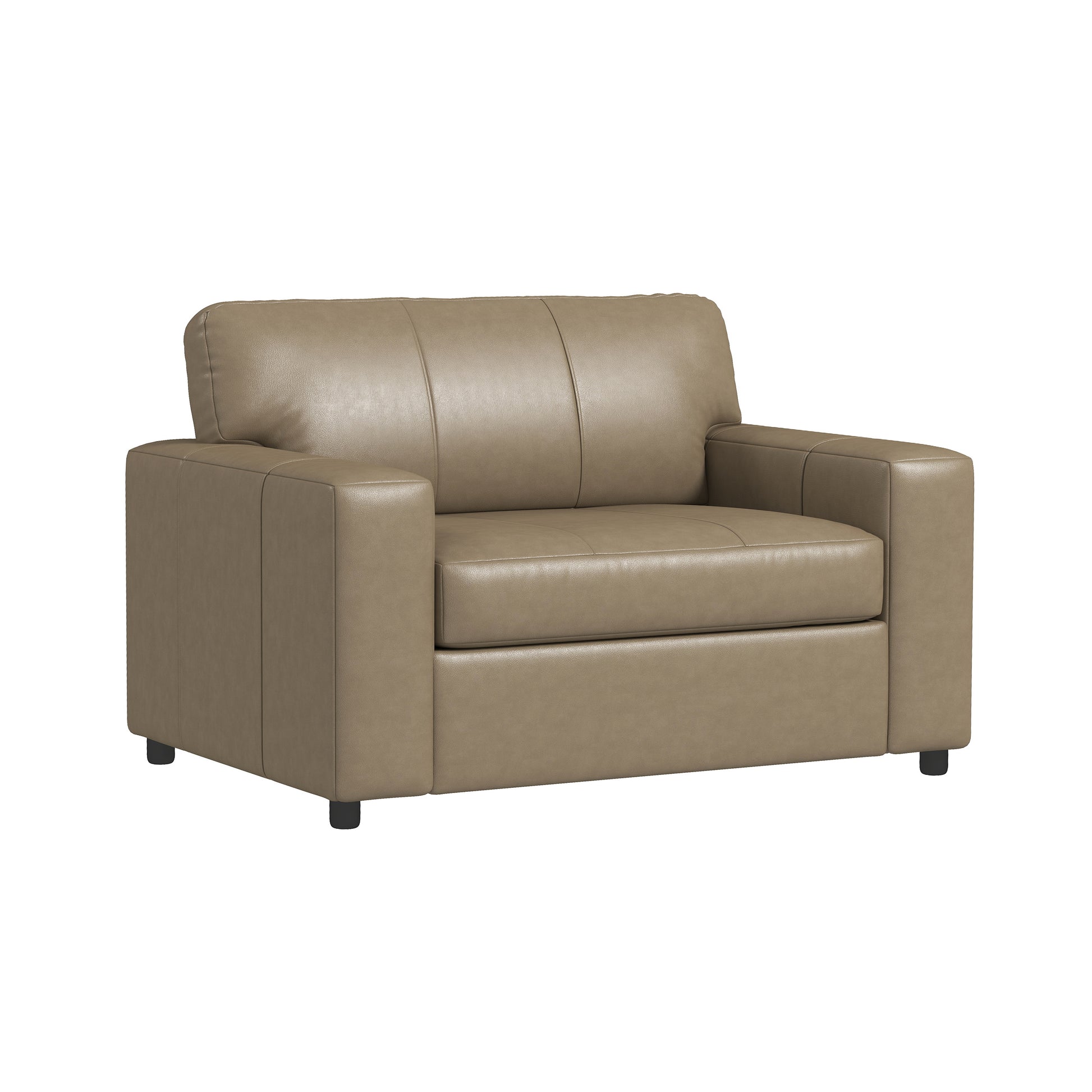 Experience a blend of comfort and style with the Roundhill Furniture Sakan Leather Upholstered Chair and A Half. This cutler chair is a beacon of modern design. Its premium leather upholstery ensure maximum comfort. The corner-blocked frame and high-resiliency foam cushions offer durability. The chic, exposed feet with a faux wood finish add a touch of rustic elegance. The innovative platform foundation system prevents sagging, maintaining a sleek, wrinkle-free appearance.