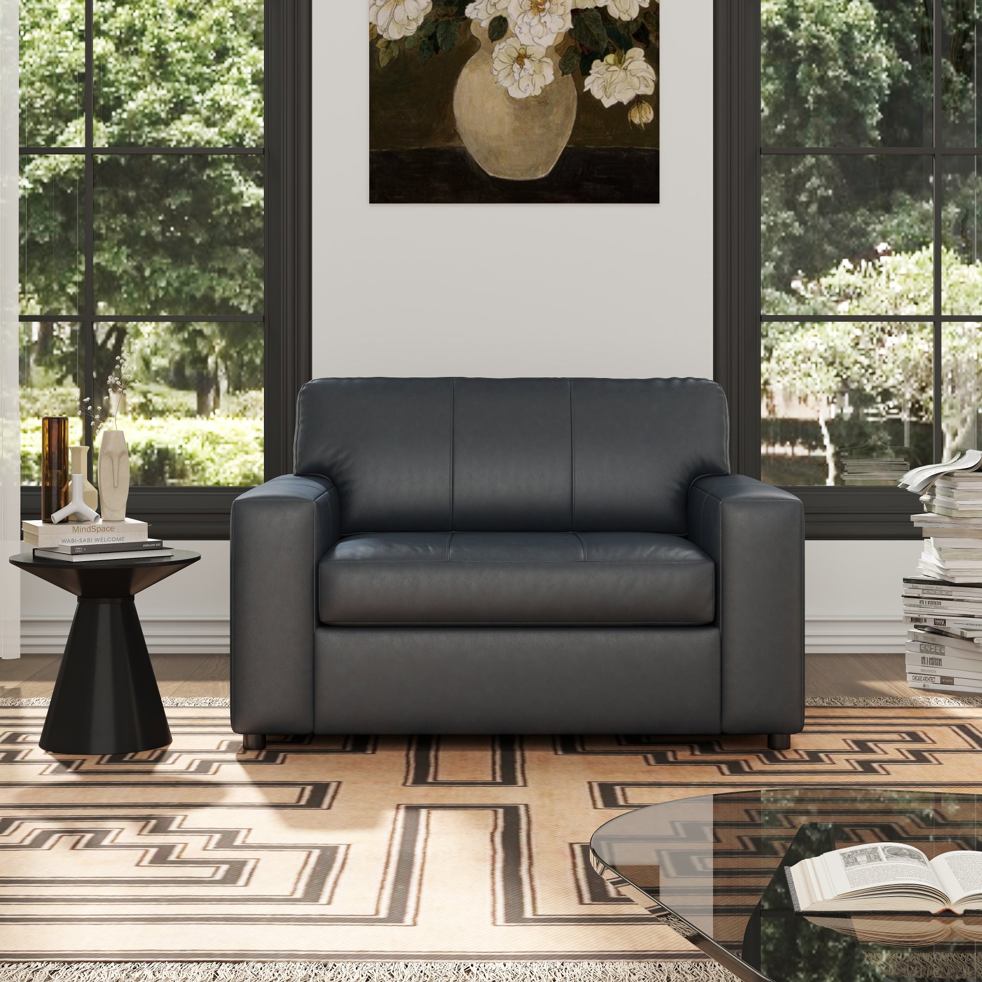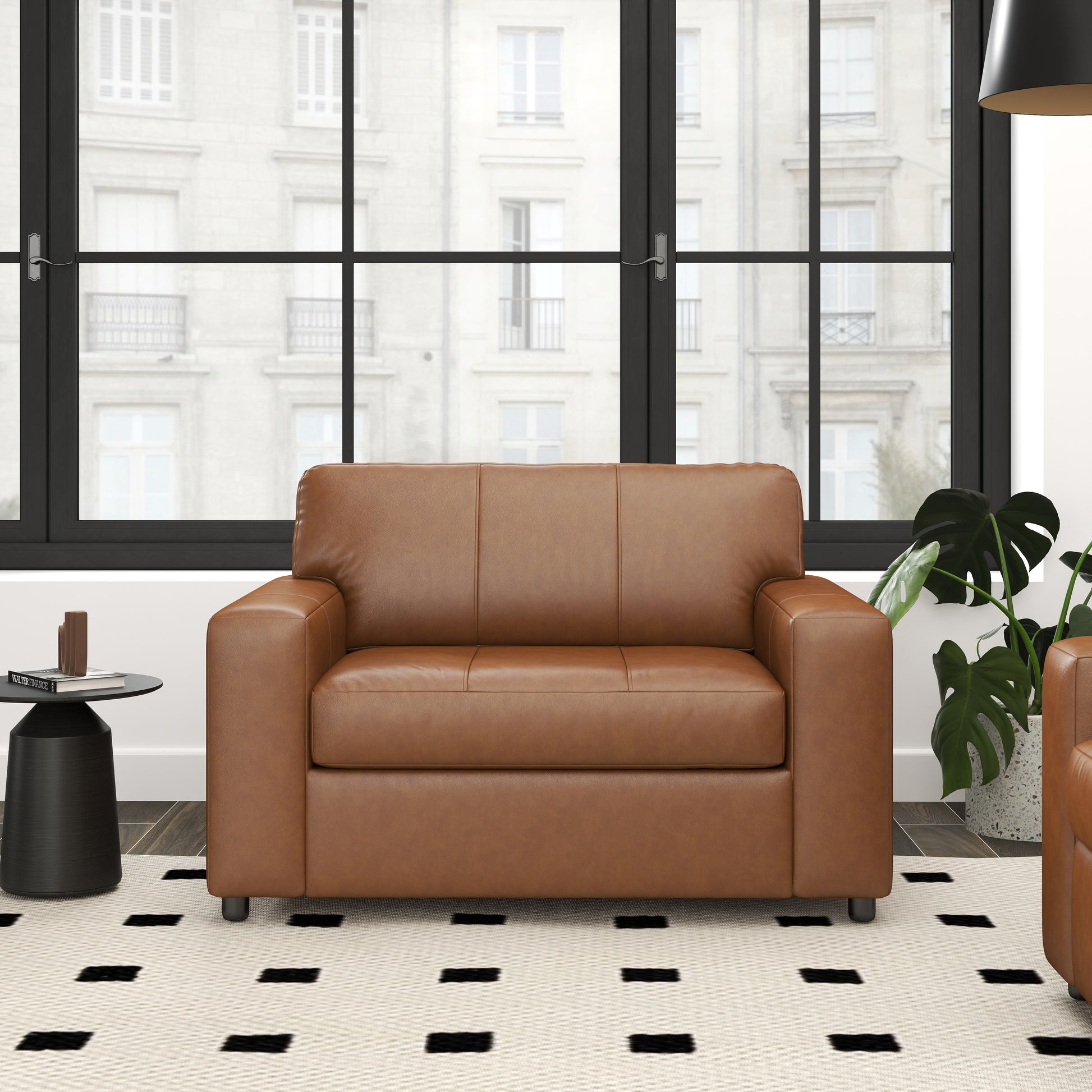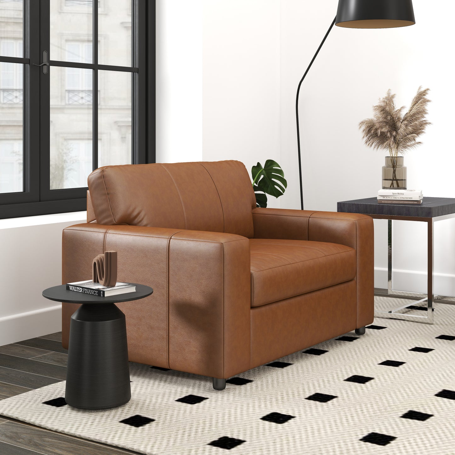- [BUILT TO LAST]: This chair is meticulously crafted with quality materials and expert attention to detail. It features high-resiliency foam cushions, while the leather covers the back, seat, and arm; skillfully matched faux leather covers the remaining areas. The exposed feet with faux wood finish add warmth and contrast.
