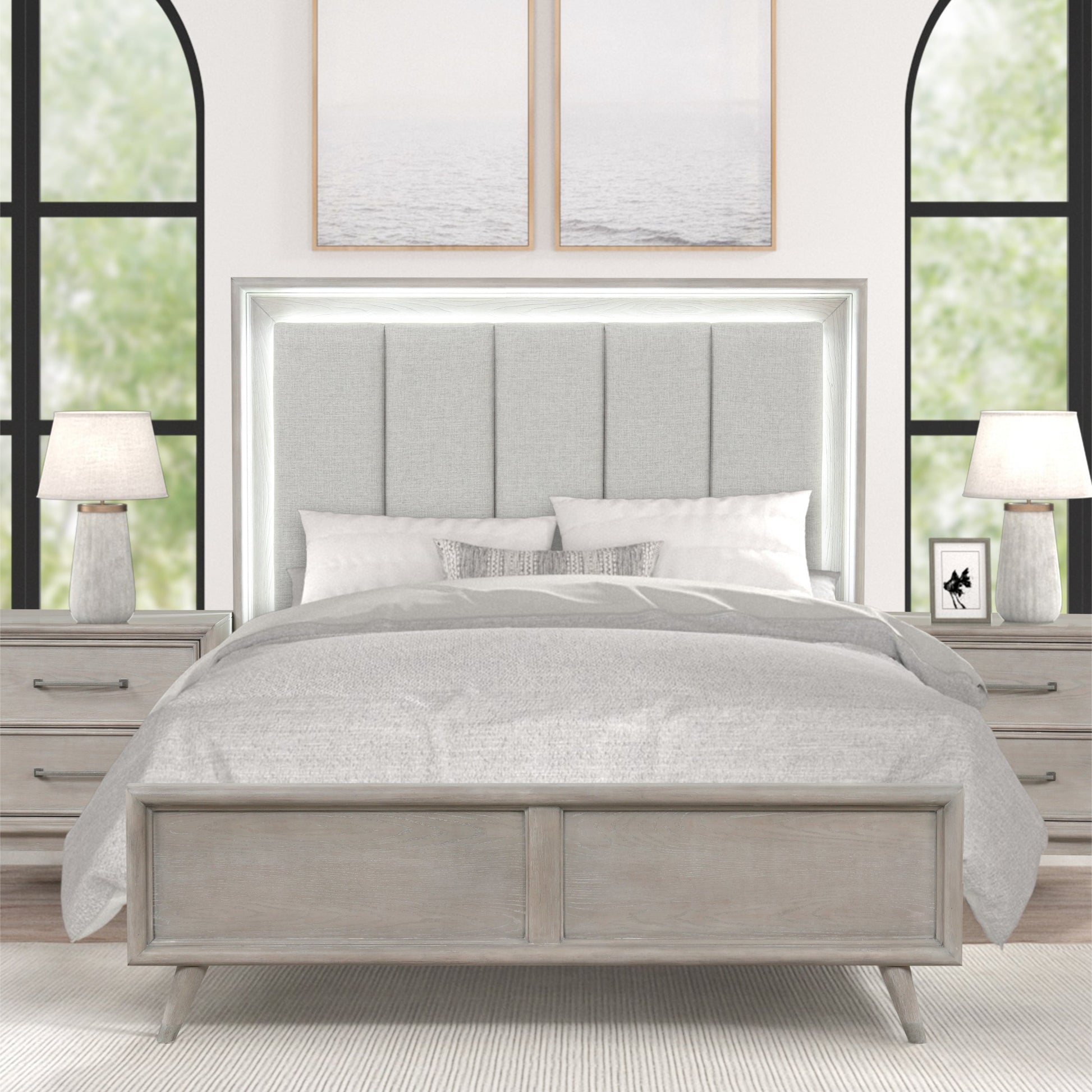 Roundhill Furniture Seluna Contemporary Bedroom Collection with Touch LED Lighting, Gray Oak Finish