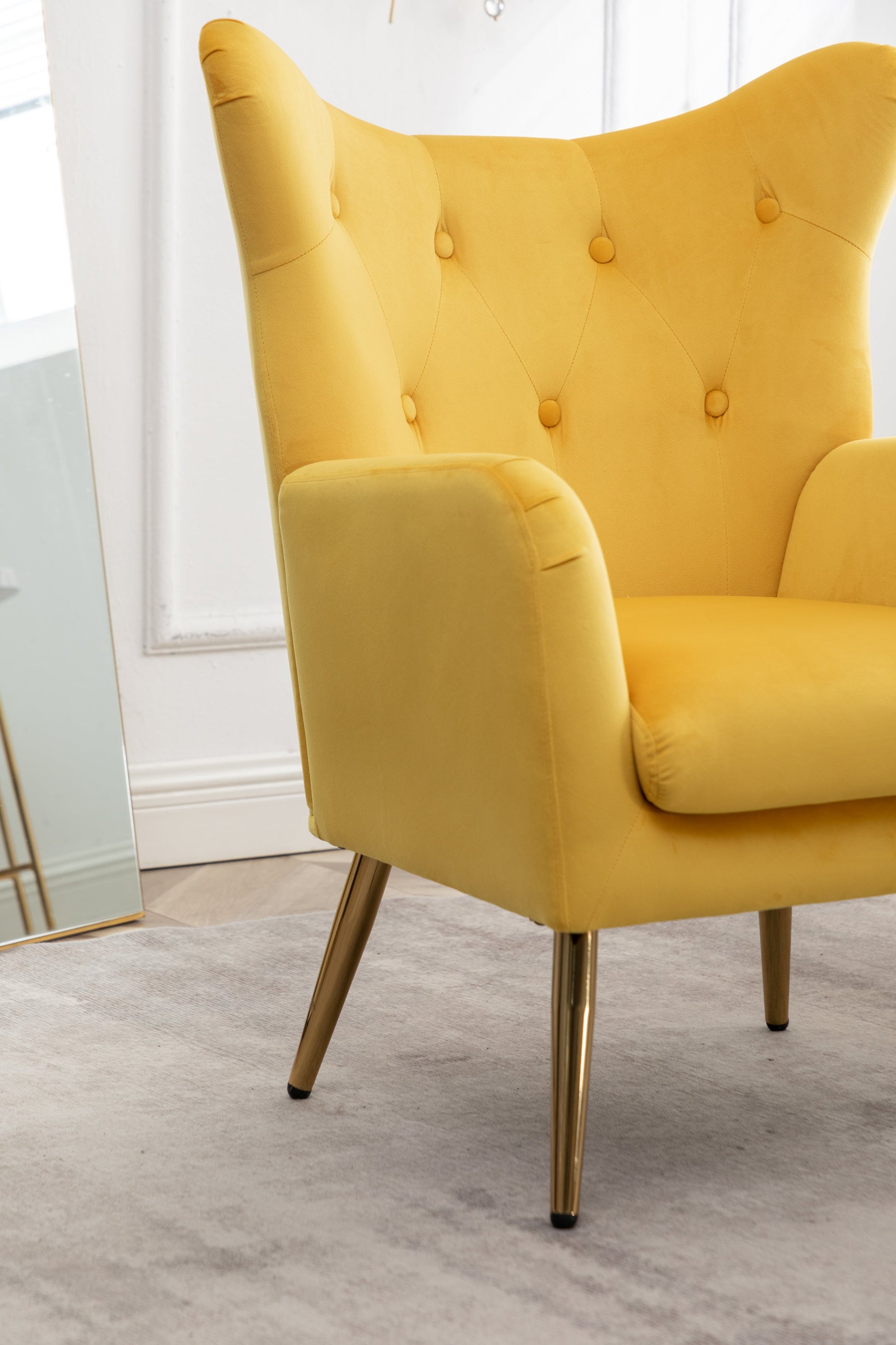 Roundhill Furniture Sovarol Velvet Button-Tufted Wing Back Accent Chair, Yellow