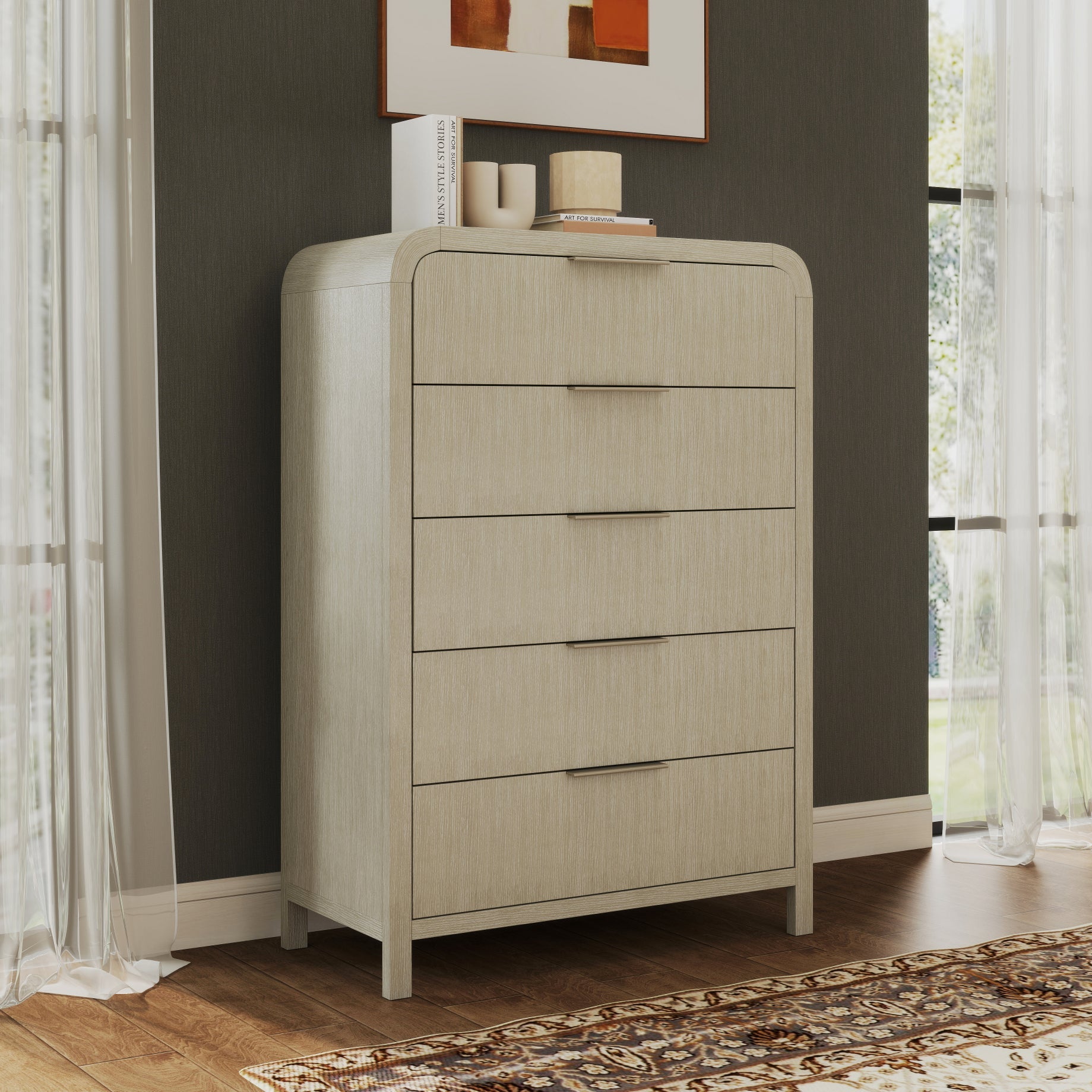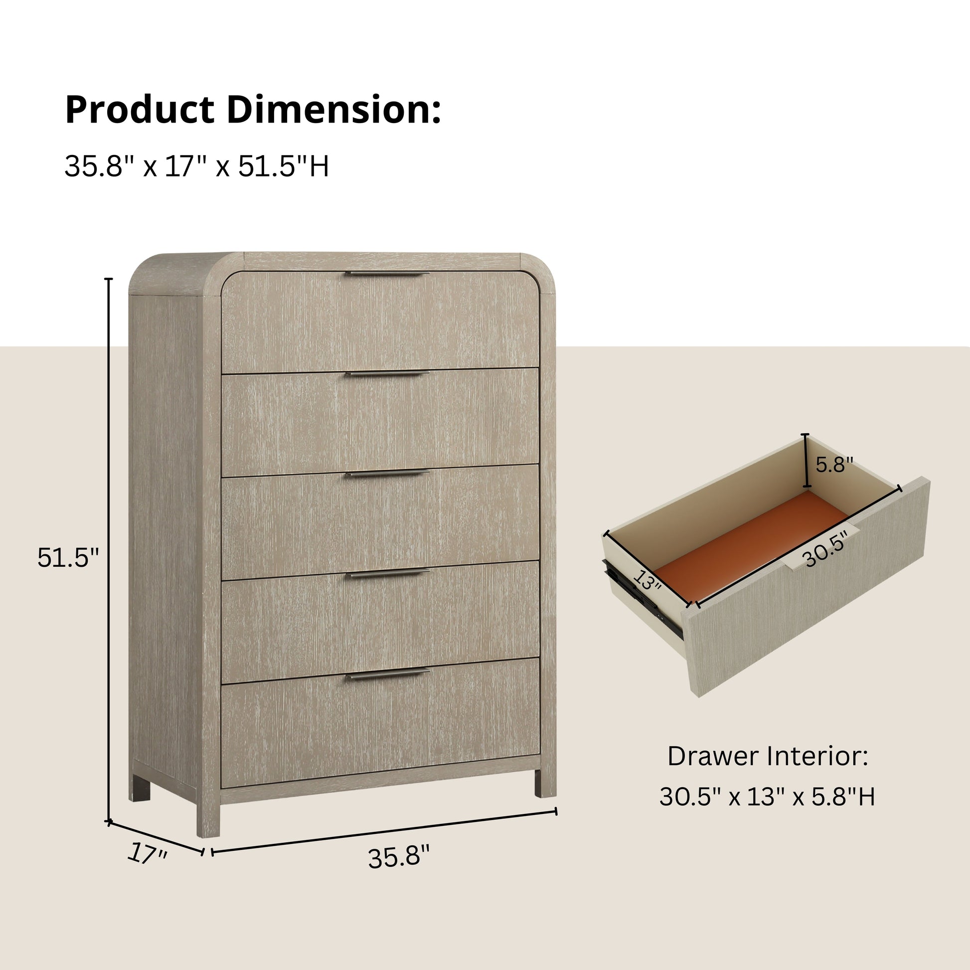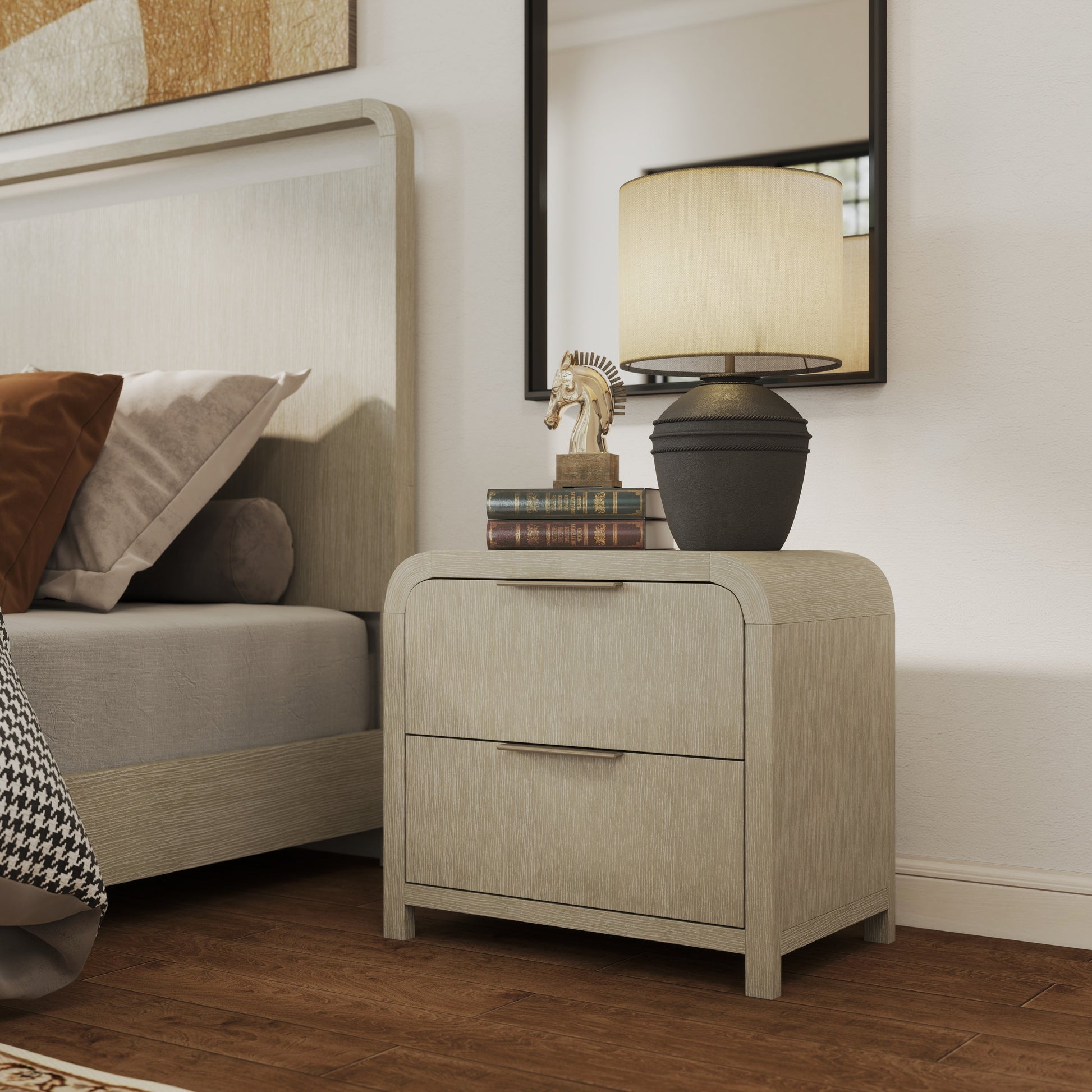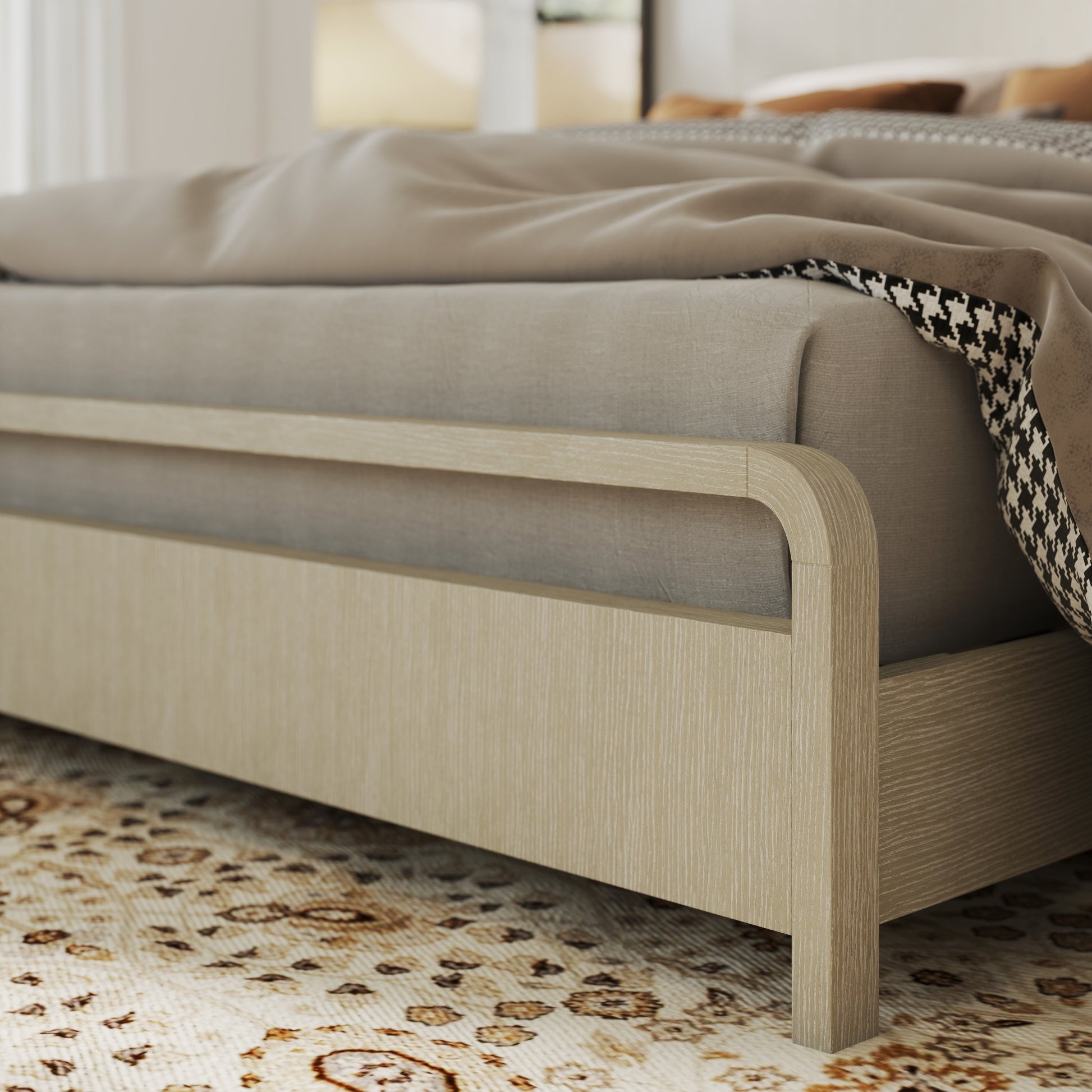 The light gray finish with wood grain texture adds a fresh, airy look, while rounded edges and sleek nickel-finished handles offer a refined touch. The panel bed's clean lines and sturdy wood construction ensure timeless appeal, while the dresser and nightstand offer generous storage with smooth-glide drawers and felt-lined top drawers to protect your essentials. A perfect balance of form and function, this set brings comfort, convenience, and style to any modern bedroom.