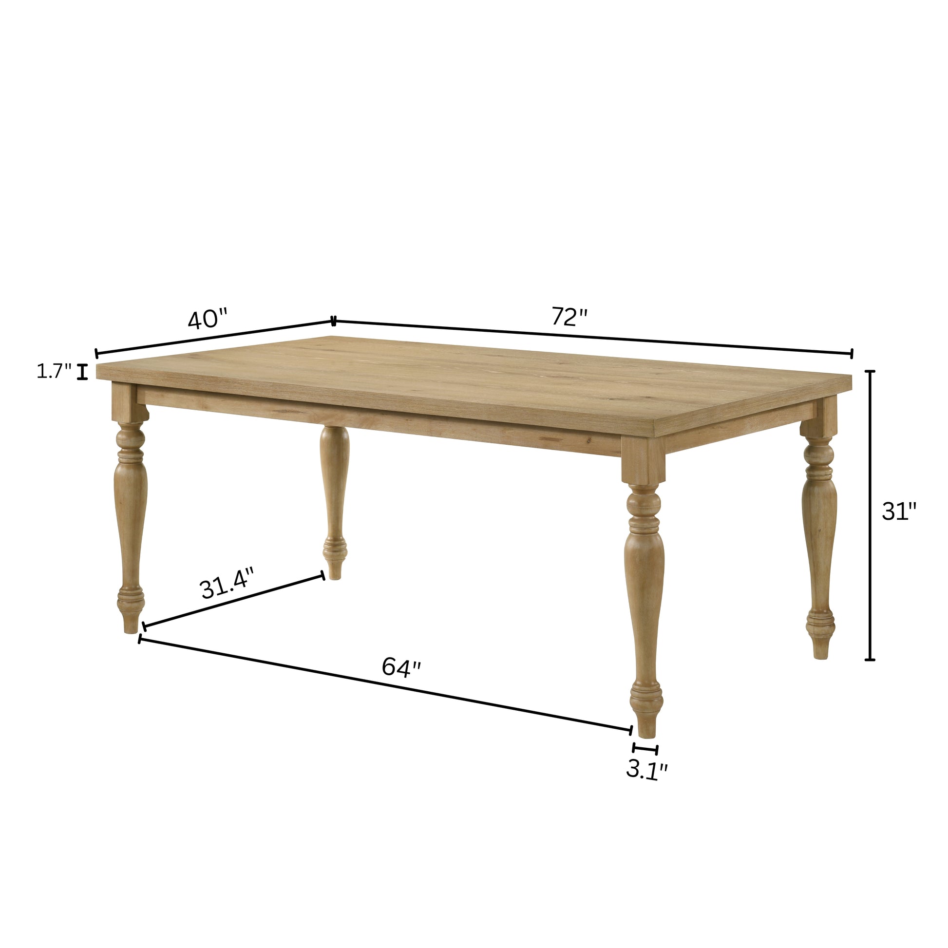 Roundhill Furniture Verta Solid Wood Leg Dining Table with Oak Veneer Top and Turned Legs