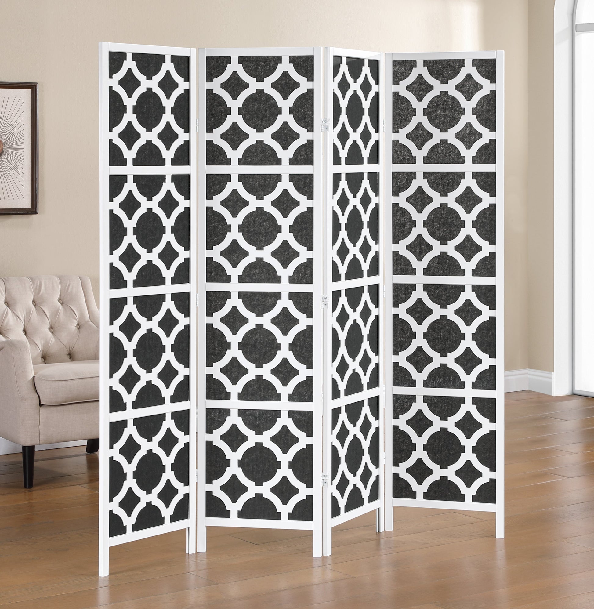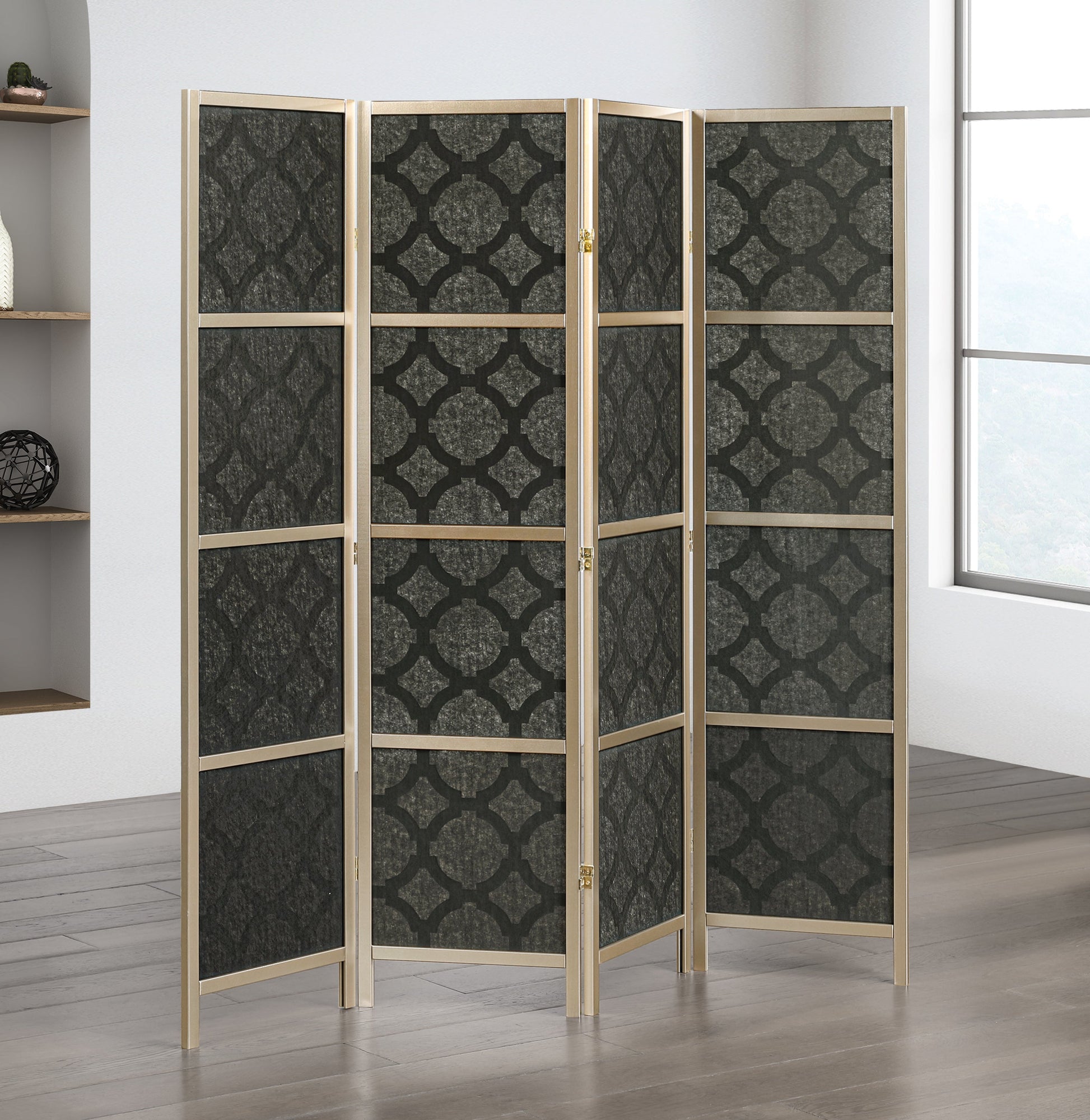 Elevate your space with this stylish 4-Panel Room Divider, designed to blend function and elegance. Framed in sturdy wood and wrapped in high-quality non-woven fabric, this folding screen adds texture and sophistication to any room. The light-filtering panels create a soft ambiance while offering privacy?€?perfect for sectioning off a home office, reading nook, or dressing area. With four versatile color options?€?gold, white, silver, and black?€?it complements a wide range of interior styles. No assembly is required, and the foldable design makes it easy to move and store, making it a smart choice for small spaces.