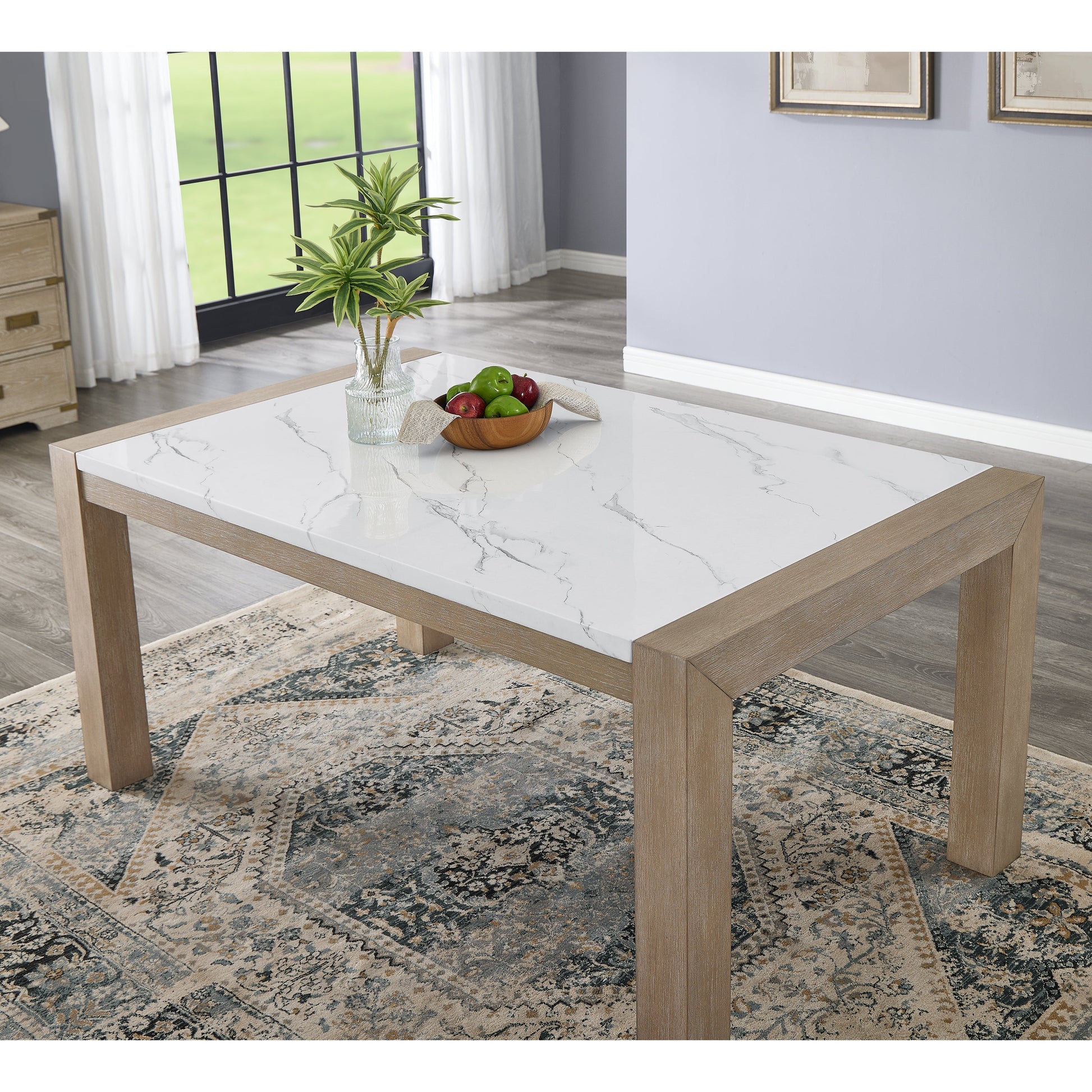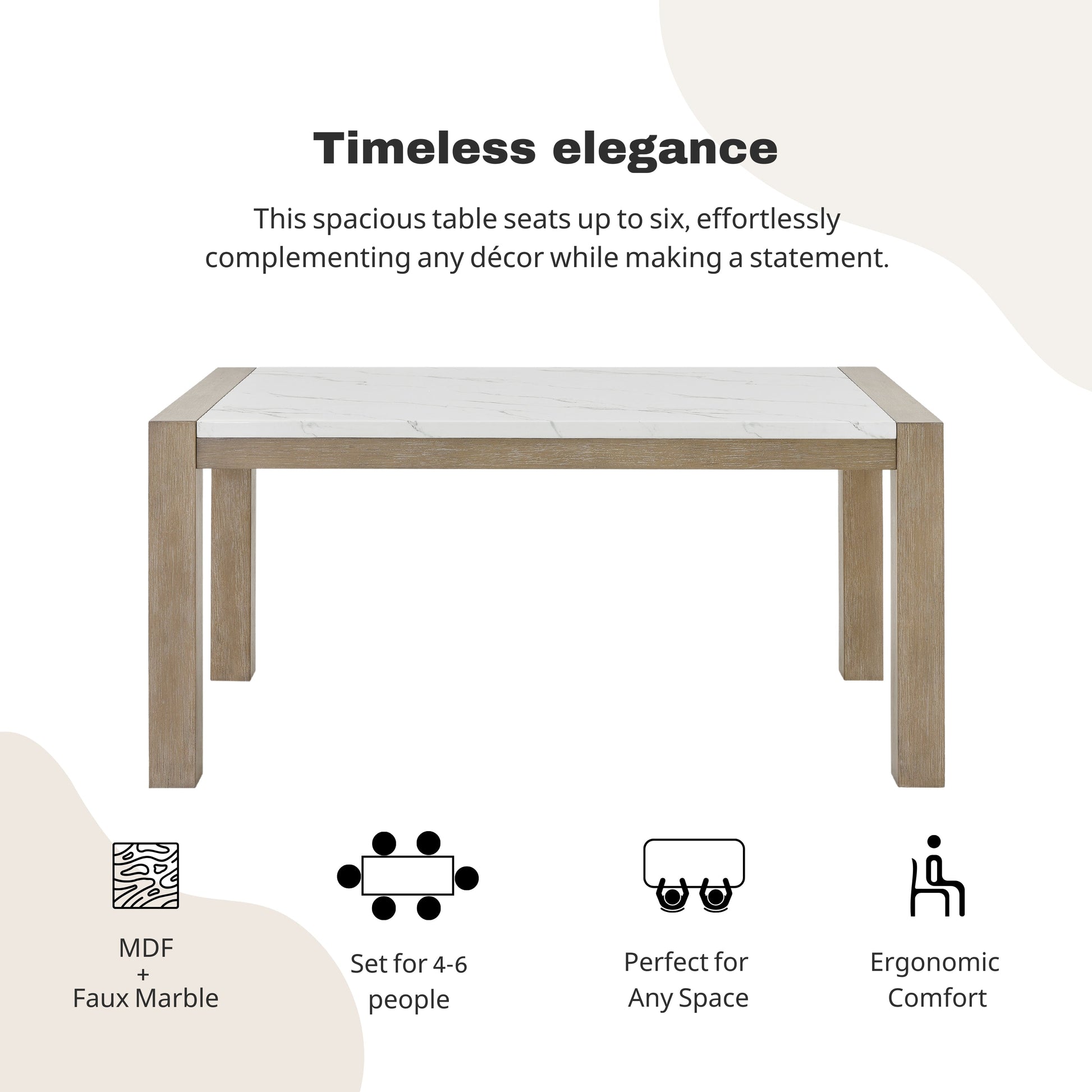 - [Elegant and Functional Design]: High-quality MDF dining table with a premium faux marble top offers a sophisticated appearance and easy maintenance. The white wire-brushed finish on the table and chair legs adds a refined, modern touch, enhancing your dining room's overall aesthetic.