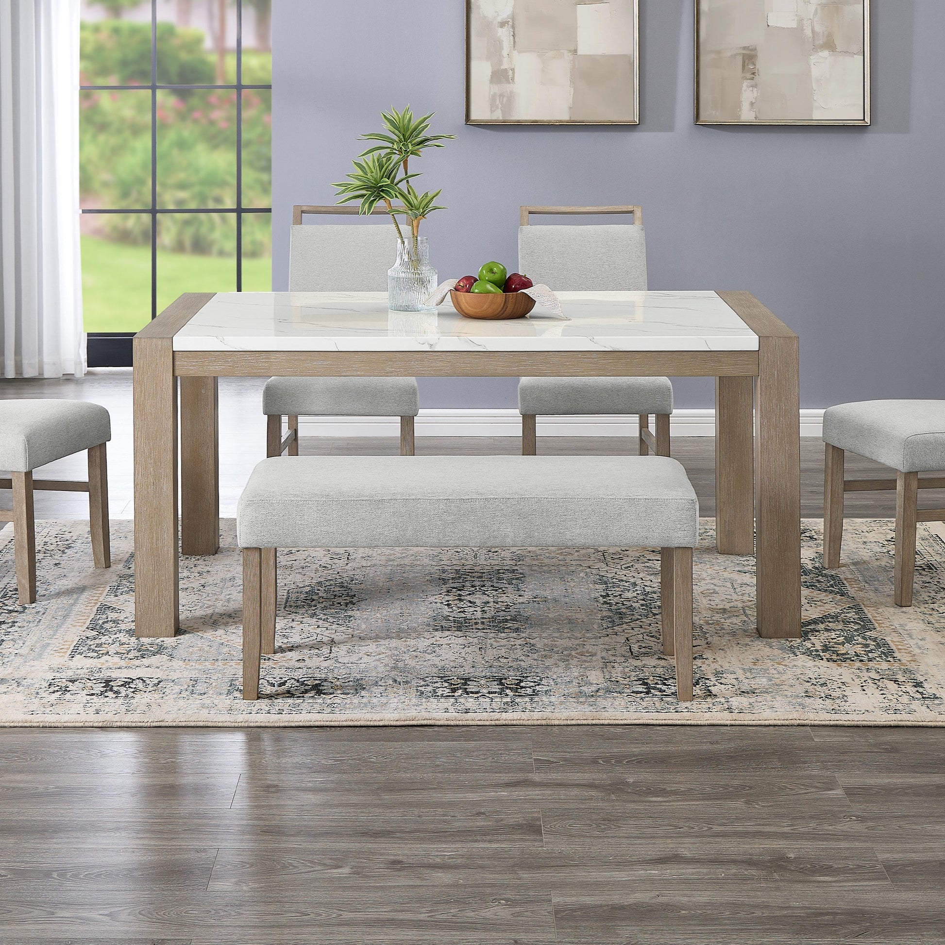 The Roundhill Furniture Zelalle Upholstered Bench perfectly combines elegance and practicality for your dining space. Built with a durable rubberwood frame, it offers excellent stability and long-term performance. The seat is upholstered in premium light gray fabric and filled with high-density foam for outstanding comfort and support. Designed to maximize space, the bench fits neatly under the dining table and accommodates multiple guests. Its sleek white wired brush finish adds a refined modern touch, making it ideal for both casual dining and formal occasions.