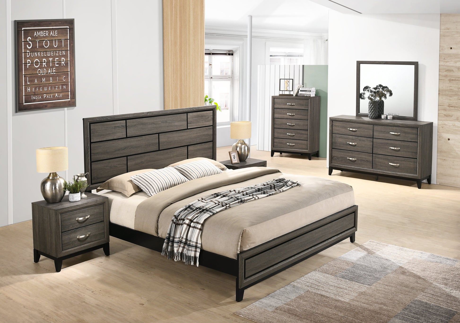 - This collection includes panel bed, dresser, mirror, nightstand, and chest.