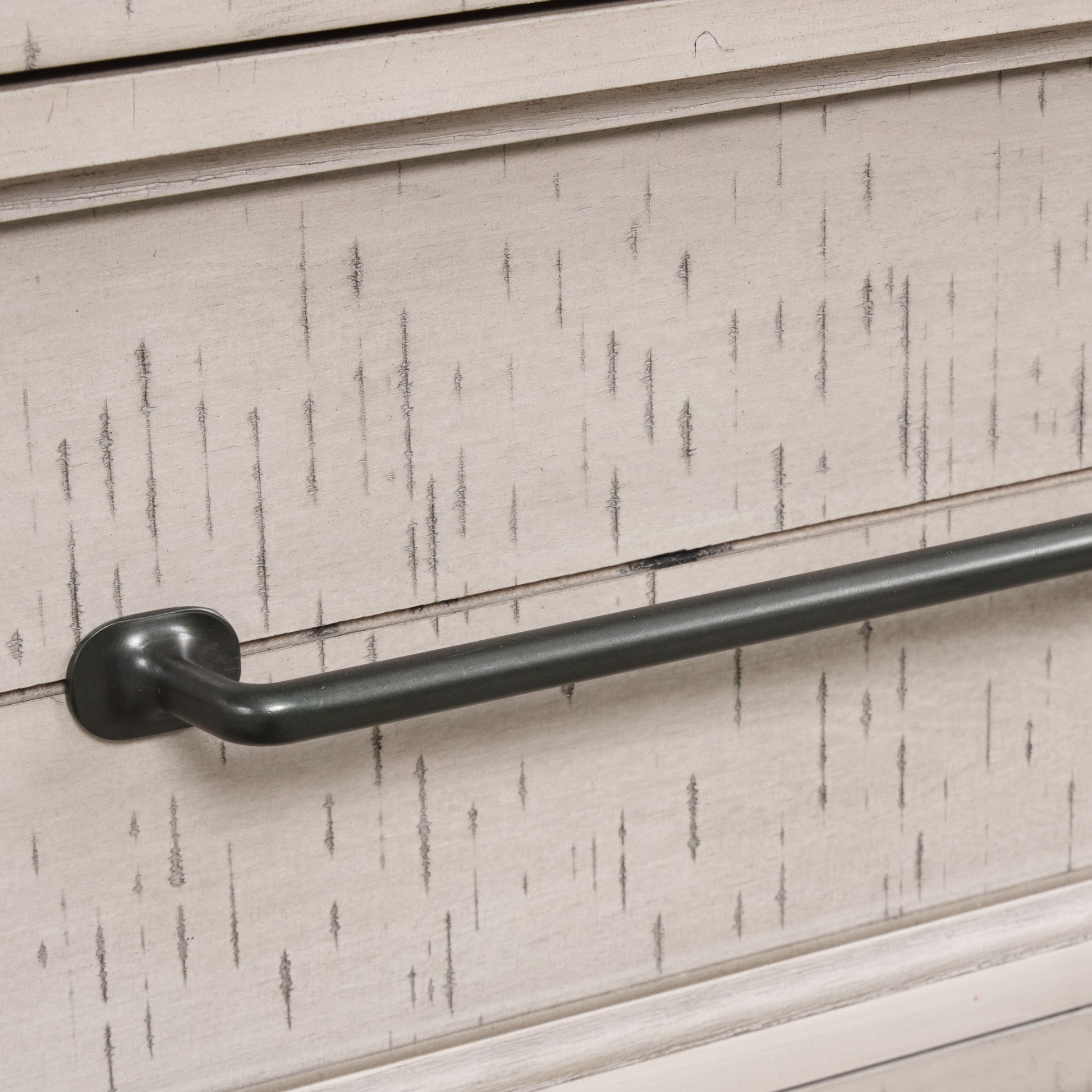 The nightstand is constructed with a rubberwood frame that provides exceptional stability and durability. The heavily distressed weathered dusty-taupe finish adds a touch of sophistication, while the saw marks create an appealing and farmhouse look. Complete with antique pewter handle and pin nail head accents, make this nightstand offers both modernity and chic feel. Features three drawers, the top of which is offset and felt-lined, and the bottom of which is cedar-lined. Highlights a Built-In Charging Station with 2 Outlets & 2 USB Ports (Type AC). Upgrade your bedroom with the Walcott Collection today!