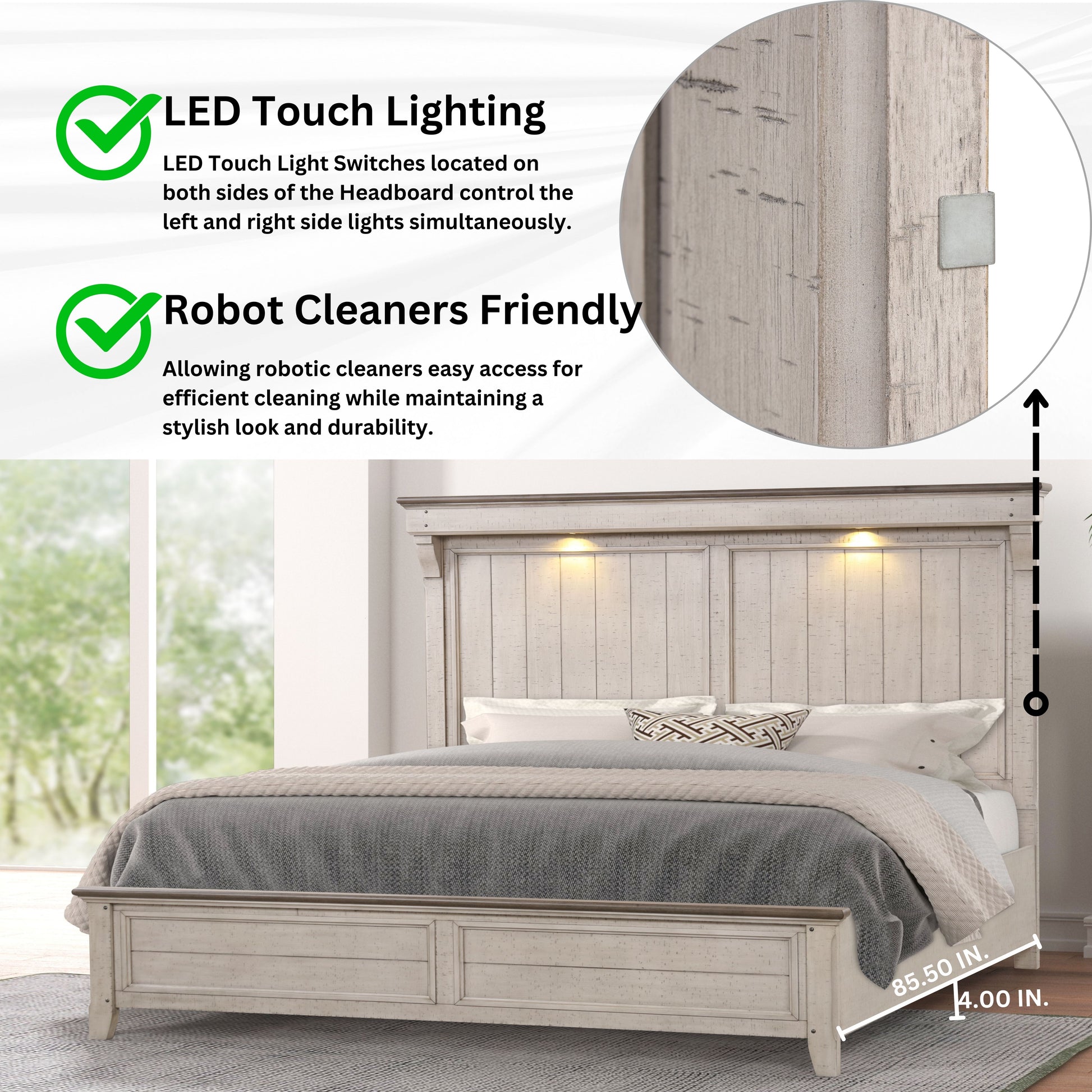 Walcott Bedroom Collection with Touch LED Lighting, Weathered Dusty-taupe Finish