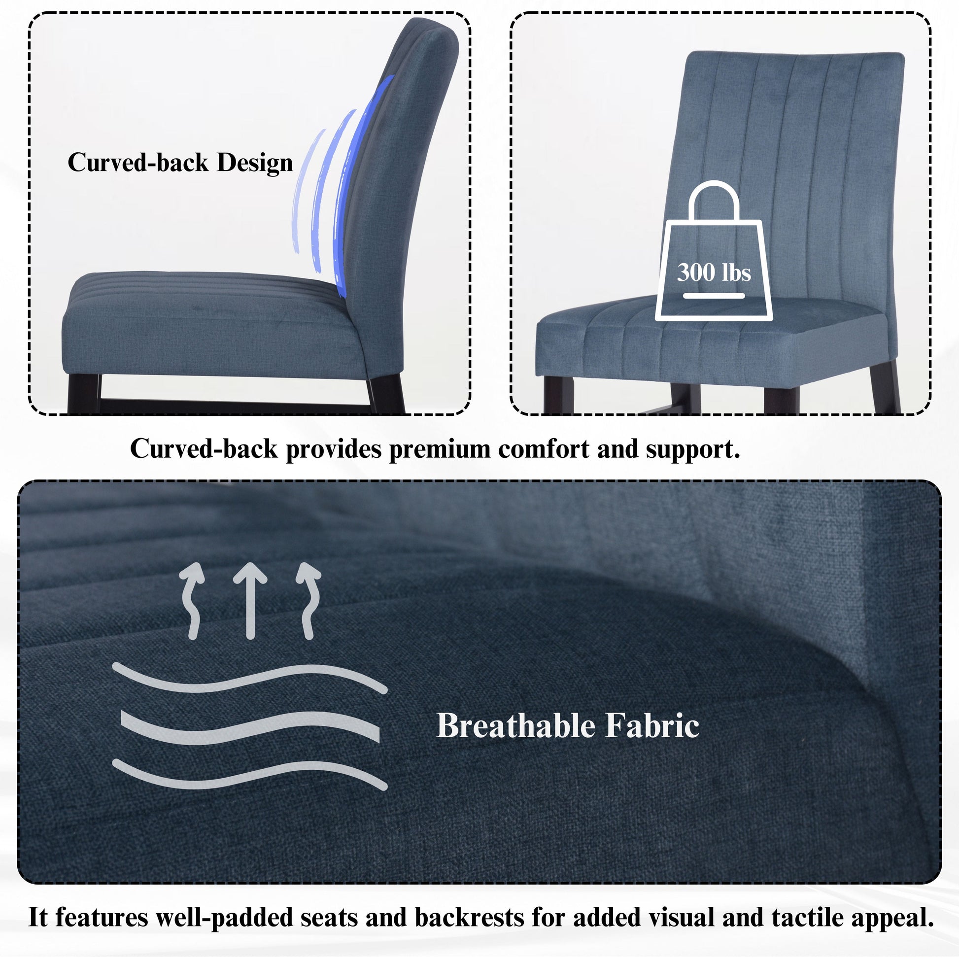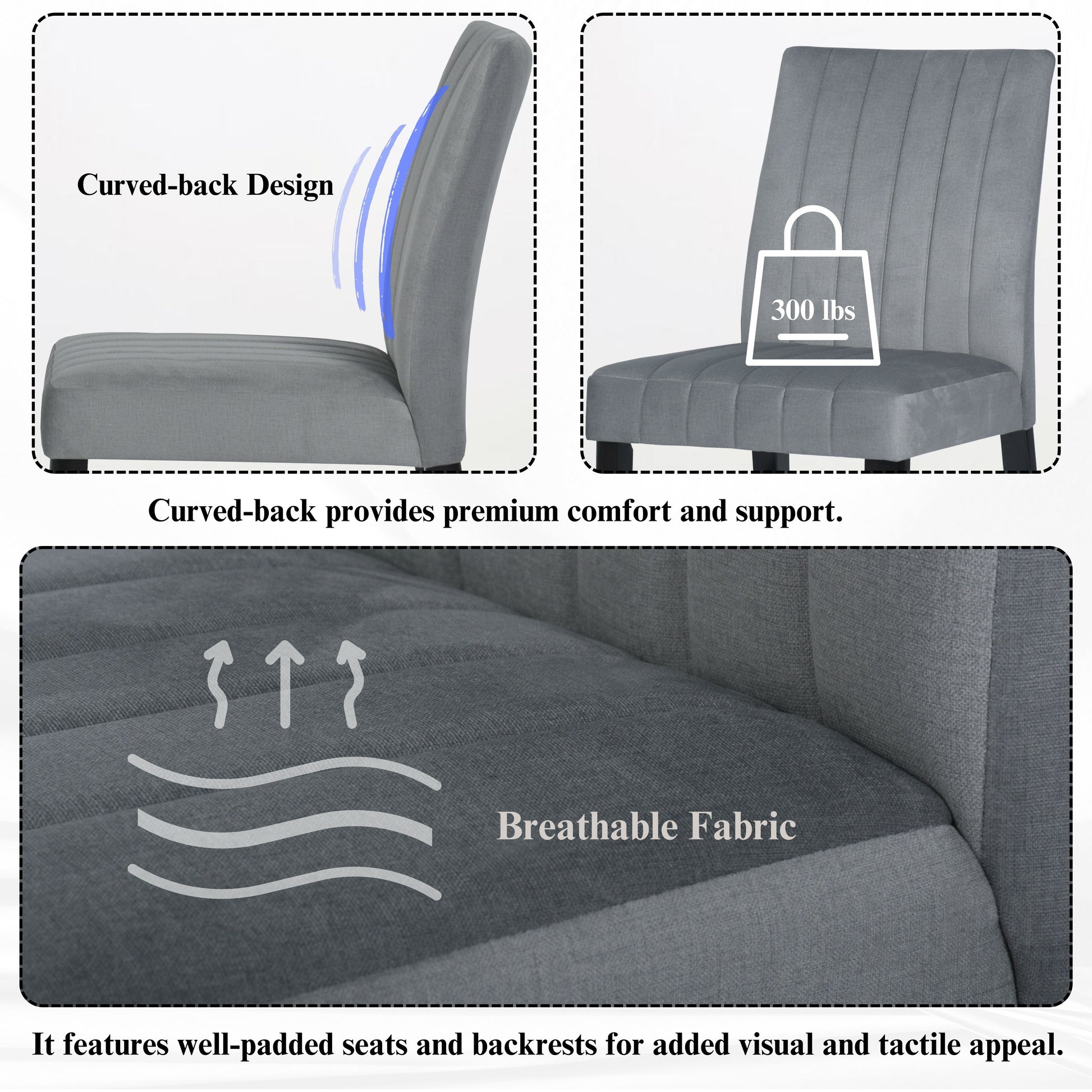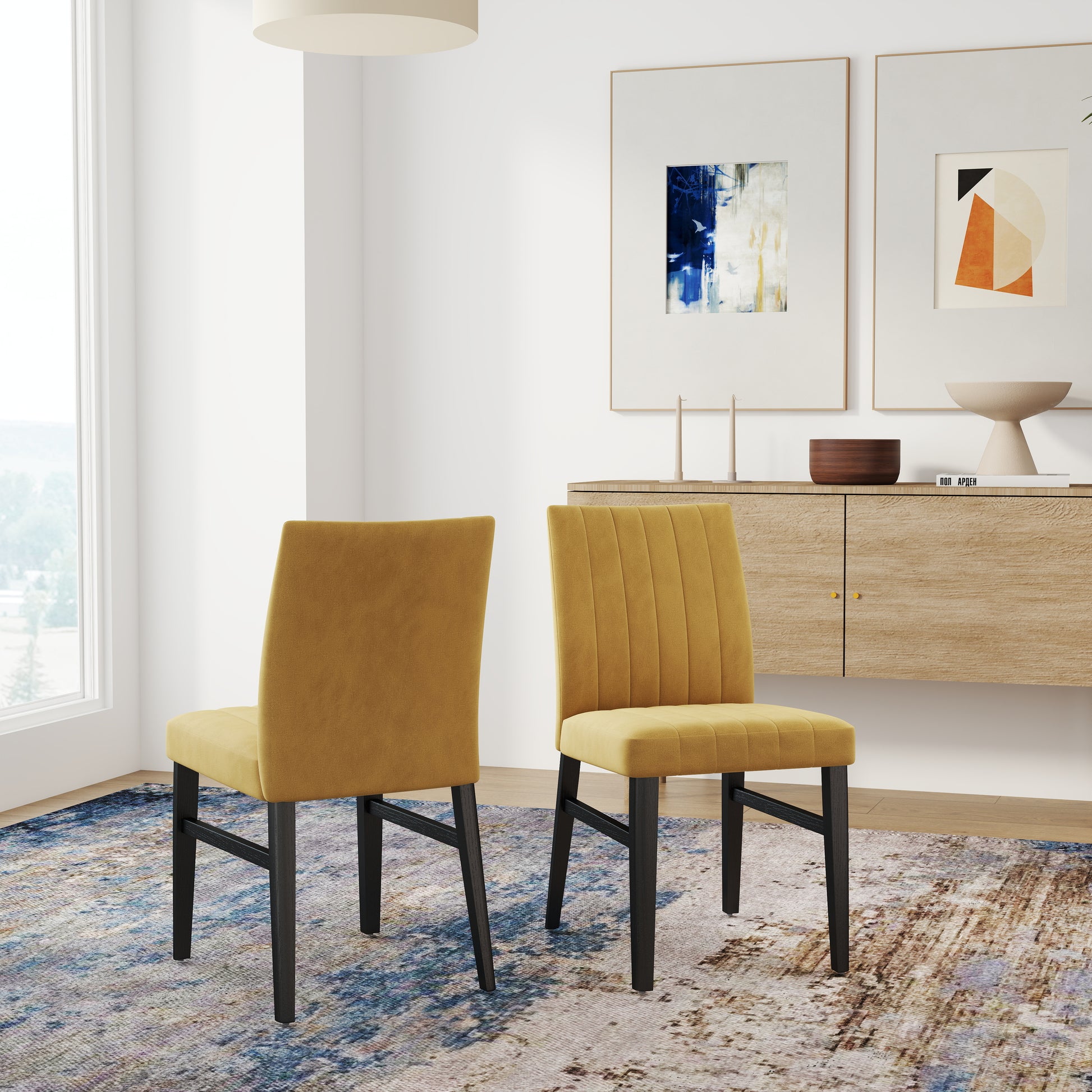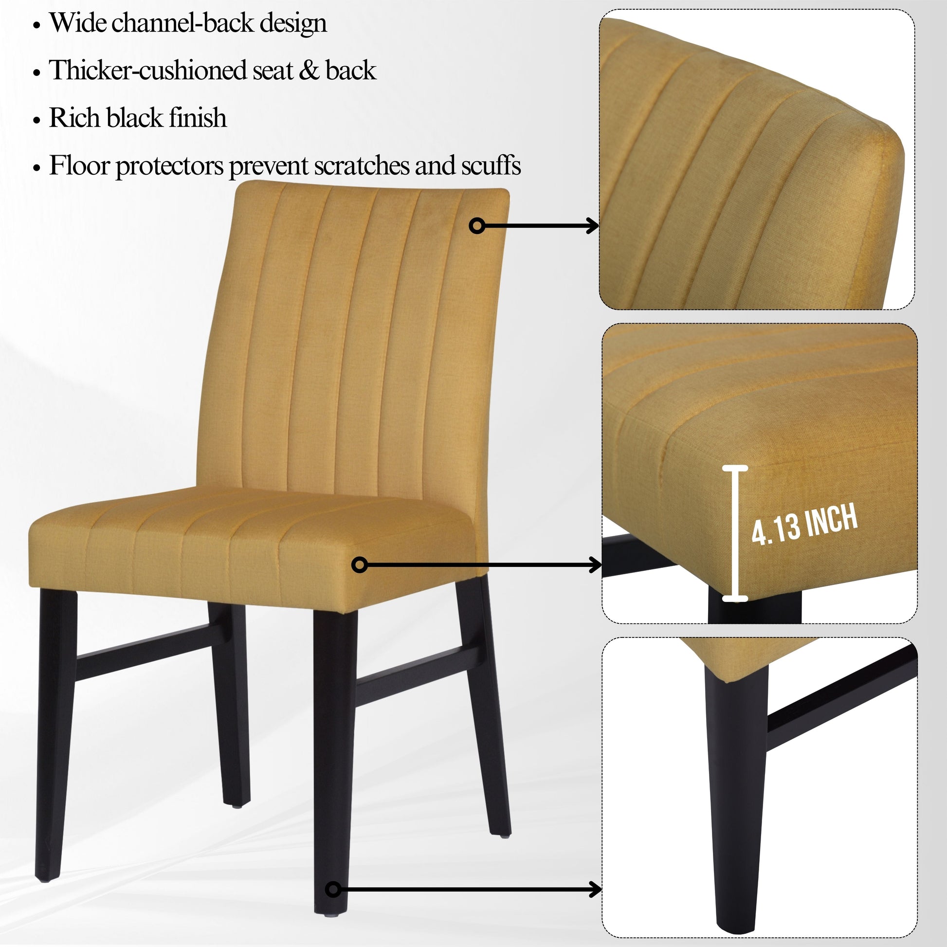 Meet the Roundhill Furniture Wendell Contemporary Upholstered Dining Chairs - a set of two chairs that perfectly blend luxury, comfort and durability. These meticulously crafted chairs are a visual treat that adds a striking touch to any room. The channel tufted design with a sleek rich-black finish effortlessly enhances the décor of your dining area. The chair features a seat and back that are overfilled with premium fabric for long-lasting comfort. The Rubberwood legs offers uncompromising stability, while built-in floor protectors keep your floors scratch-free.