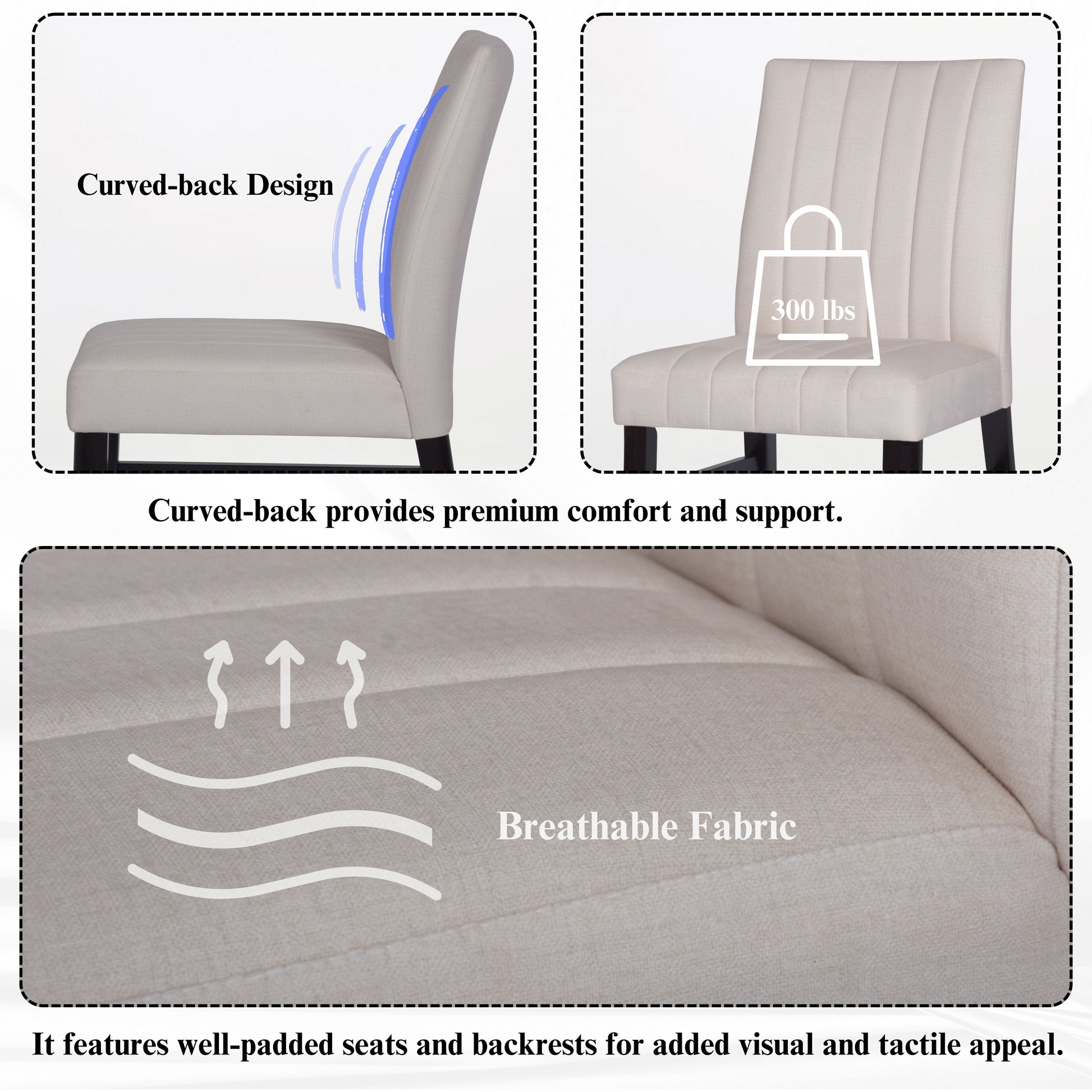- The dining chair is well-upholstered with an overfilled seat and back for optimal comfort and support when sitting for long periods of time. It is also suitable for leisure areas, offices and study rooms, providing a cozy spot for dining, reading or using as a vanity chair.