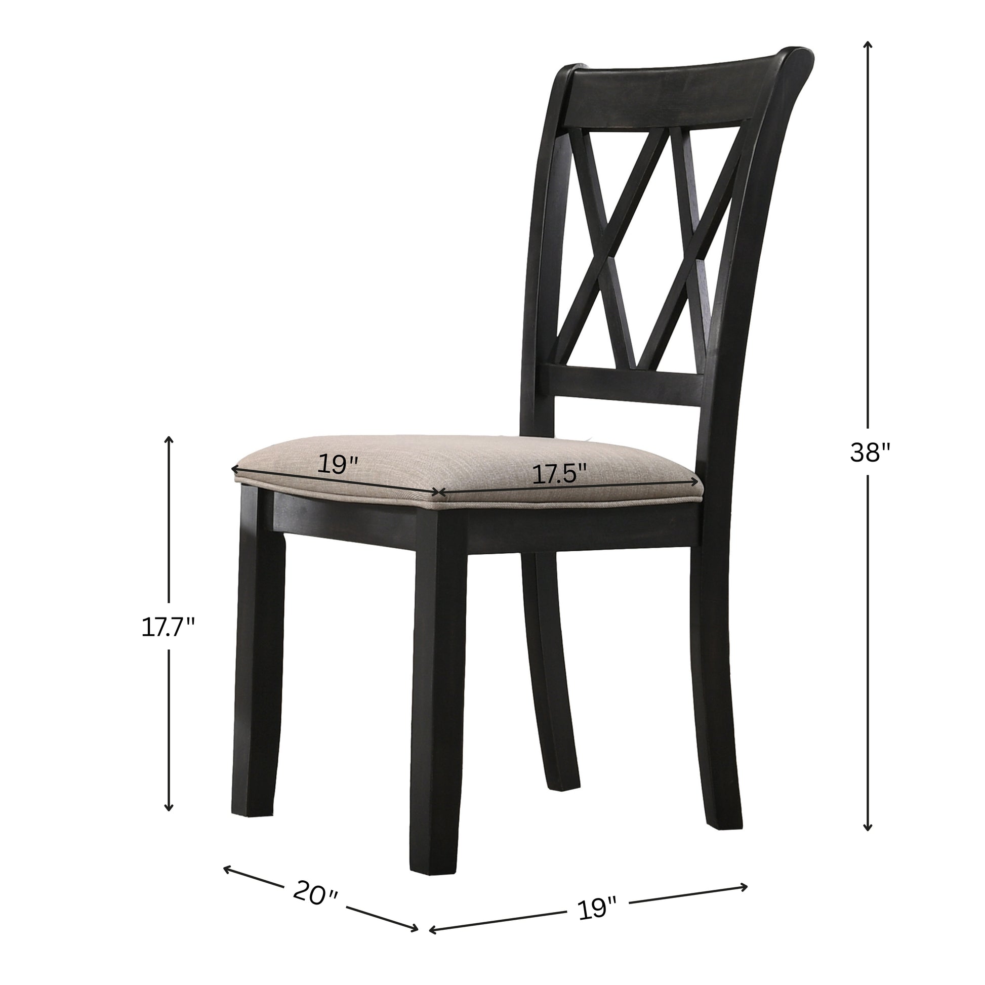 Chairs: 20W x 19D x 38H.